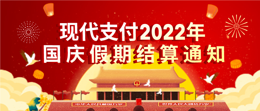 現(xiàn)代支付2022年國(guó)慶假期結(jié)算通知
