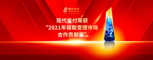 獲獎(jiǎng)!現(xiàn)代支付榮獲“2021年銀聯(lián)受理市場(chǎng)合作貢獻(xiàn)獎(jiǎng)”